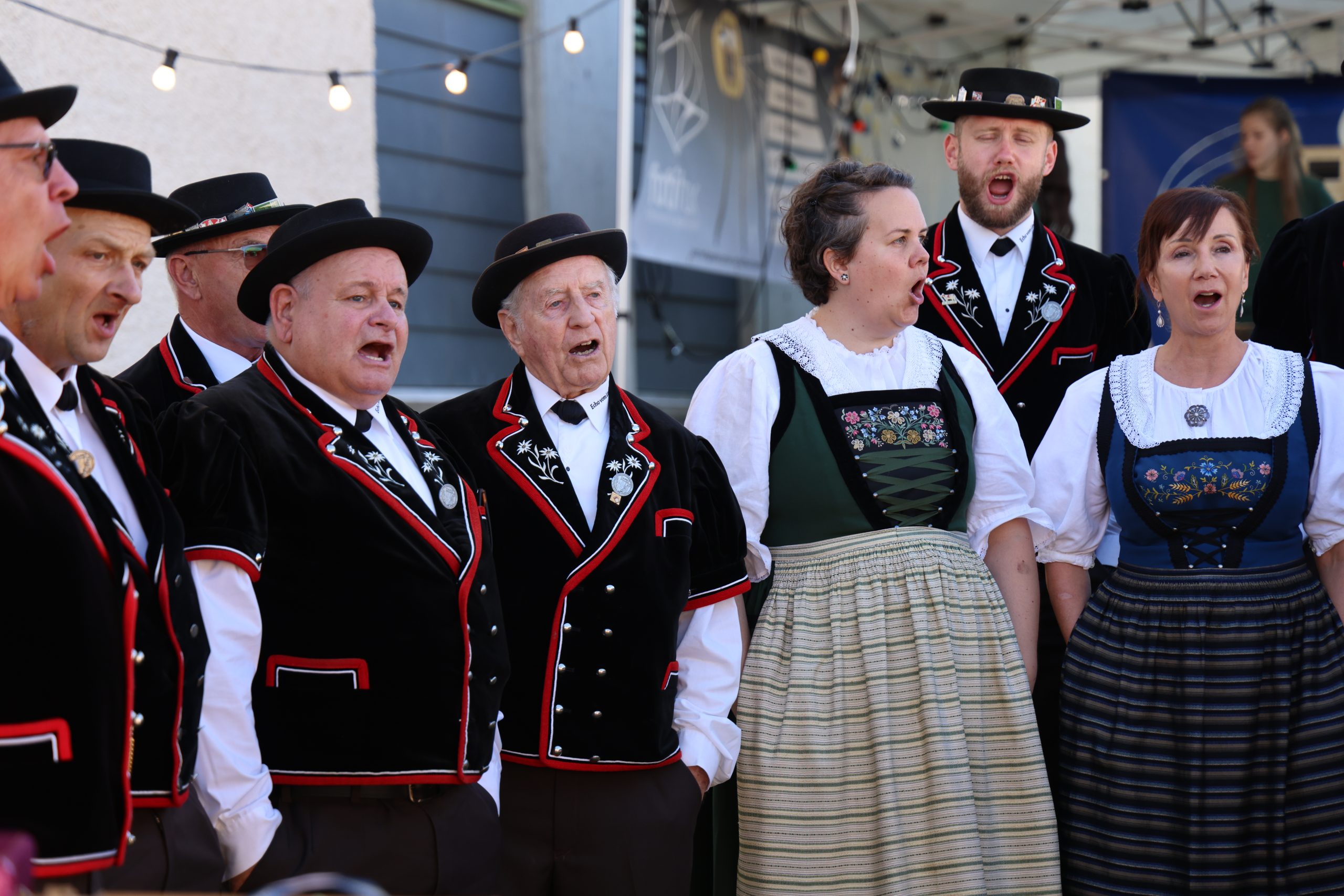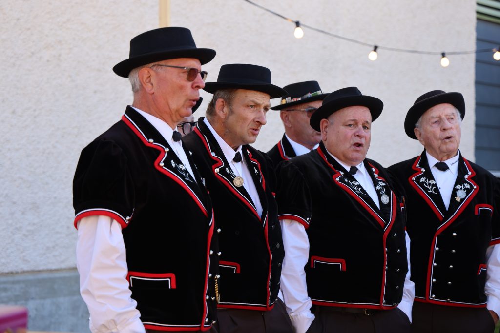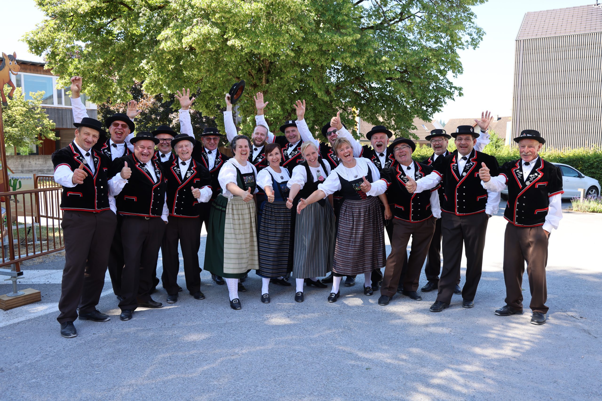 Danach gings zum Apéro: Ein ganzer Wagen voll feiner Sachen, sehr schön dekoriert, wartete auf uns 🙂 Vor dem Mittagessen gab es dann nochmals drei Lieder. Selbstverständlich durfte auch „Mys Freiamt“ nicht fehlen.